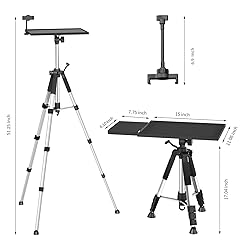 [ADJUSTABLE] The tripod for projector can easily set the height between 17.6 inches and 51.4 inches and it comes with a small gooseneck phone holder, you can adjust the angle of the plate,tripod projector stand give you a comfortable experience [STABLE] The projector tripod stand is more stable than the bottom tripod bracket. A hook is reserved at the bottom to hang proper weights to make it more stable [MULTIFUNCTIONAL] The size of the plate of laptop stand tripod is 14.9" x 11", the portable projector stand can be used for projector, laptop, DJ and so on, suit for various scenarios, like home theater, conference, speech, report, DJ, office [NO SLIP] The stand for projector is equipped with a non-slip mat and two elastic fixing straps. Please lock all the knobs before use [PORTABLE] The projector table stand has a foldable design, you can easily fold it away and take it where you need it