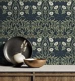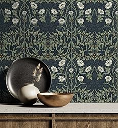 NextWall Stenciled Floral Peel and Stick Wallpaper (Navy & Sage)