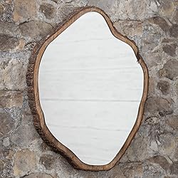 - Bring an element of natural charm to your home decor with the Black Forest Décor Timber Slice Bark Mirror. Designed to resemble a slice of wood with a lifelike bark edge, this mirror adds a rustic, earthy touch to any wall, making it perfect for cabins, lodges, or nature-themed spaces. Measuring 22.5 inches wide by 1.75 inches deep and 18.5 inches high, it’s ideal for entryways, living rooms, or bedrooms. Crafted with attention to durability and rustic style, this mirror makes an inviting focal point, enhancing any space with a warm, woodland feel. Hardware not included for easy installation.