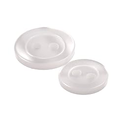 Mibo Buttons & Accessories Polyester Shirt Button - 2 Hole - Bevelled Rim - Imitation Trochas Shell - (Front, Sleeve, Collar) Combo Pack - 16L(10mm) 4pcs - 20L(12mm) 10pcs - White