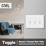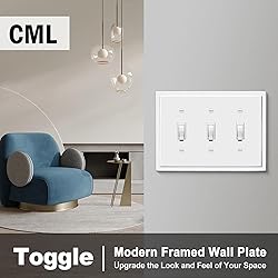 These wall plates match the entire collection of other CML modern framed wall plates for a complete, stylish modern decor anywhere a wallplate is needed CML gloss finish modern framed wall plates offer a subtle, but easy way to upgrade and modernize your toggle switches without having to change the switch itself Impact resistant polycarbonate construction is virtually unbreakable, and durable enough for, commercial settings such as work shops or hotels and is easy to clean 3-gang toggle design have many applications where 3 light switches are together in a row in the same electrical box Standard size 6.87”X 4.87”