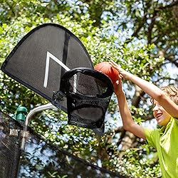 Universal Trampoline Basketball Hoop: Come with universal clamp, work for straight pole, curved pole, arch style, and most kinds of trampoline Note: The universal clamp only work for 25mm-38mm trampoline pole Adjustable Angle Basketball Board: You could adjust the angle, keep the board is vertical to ground. So Our Trampoline basketball hoop not only could work for the straight pole but also work for the curved pole More Stable and Sturdy: The update basketball hoop use the strong bolt replace the fluted disc design, so the whole structure is more sturdy. Lightweight PP board, won't damage trampoline pole Come with mini rubber basketball, a pump and wrench Don't work for fiberglass trampoline pole