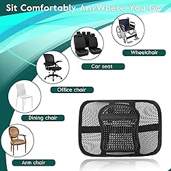 U𝗽𝗴𝗿a𝗱𝗲𝗱 L𝘂𝗺𝗯a𝗿 S𝘂𝗽𝗽𝗼𝗿𝘁 -- The upgrade Samyoung mesh lumbar back support added 2 adjustable vertical straps where you can easily decrease or increase the bend of the frame, provides stronger support to fit your lumbar better also keep the back support in place. F𝗶𝘁 O𝗻 M𝗼𝘀𝘁 S𝗲a𝘁 --The lumbar support can fit perfectly for any seats with high elastic bands, easy to take and removable. Our mesh lumbar support can be used on office chairs, arm chairs, sofas, car seats or any chair with a backrest. E𝗿𝗴𝗼𝗻𝗼𝗺𝗶𝗰 C𝗵a𝗶𝗿 C𝘂𝘀𝗵𝗶𝗼𝗻𝘀 -- Samyoung upgrade lumbar support can fit your lumbar better with adjustable high elastic bands, it can help you correct your sitting posture and support your lumbar effectively, relieve the discomfort caused by sitting or driving for a long time. L𝘂𝗺𝗯a𝗿 S𝘂𝗽𝗽𝗼𝗿𝘁 R𝗲𝗹a𝘅𝗲𝘀 Y𝗼𝘂𝗿 Ba𝗰𝗸 -- The breathable mesh back support with ergonomic adjustable tension straps provides gentle reinforcement help for correcting your sitting posture, relaxing your back and lumbar spine. B𝗿𝗲a𝘁𝗵a𝗯𝗹𝗲 M𝗲𝘀𝗵 C𝗼𝗻𝘀𝘁𝗿𝘂𝗰𝘁𝗶𝗼𝗻 -- Made of double-layer mesh fabric that keeps your back and waist cool and breathable. Furthermore, mesh lumbar back support has many beads can massage you back muscle for relaxing.