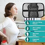 - Samyoung Mesh Lumbar Back Support cares enough to spend a grand on your spine! Why Is Choosing a Good Back Support Important? The average office worker spends 1920 hours sitting at work every year. This can lead to back pain, muscle tightness. This lumbar support promotes the maintenance of good posture, by keeping the natural curved shape of your lumbar which will easing the tension and pain caused by sitting all day long, less painful and more productive. FEATURE: Adjustable straps allow you to set your comfort and support needs. Durable open-weave soft mesh cover allows to 'breathe'. Help to support the lumbar curve of your lower back to relieve back pain Compensates for poor seating - less stress on your back, less fatigue. PRODUCT SPECIFICATIONS: Material: PP, Silicon resin, elastic rubber Size: 15.7” x 12.2” x 3.1” Color: Black Weight: 9.9 Ounces