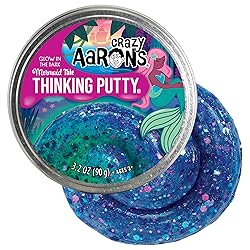 COLOR CHANGING PUTTY: Dive into enchantment with Crazy Aaron's Thinking Putty Mermaid Tale, which glows in the dark and features mesmerizing turquoise and purple color-shifting sparkles. SOMETHING FOR EVERYONE: Stretch it, bounce it, pop it, tear it, and sculpt it! Perfect for children aged 3 and up, promoting fine motor skills and imaginative exploration. QUALITY YOU CAN TRUST: Each package includes 1/5 lb. (3.2 oz) of Genuine Crazy Aaron’s Thinking Putty, providing ample material for countless creative projects and fun activities. PERFECT SENSORY TOY: Our Thinking Putty is manufactured with the assistance of exceptional individuals challenged with disabilities, reflecting our commitment to inclusivity and social responsibility. THINKING PUTTY: Proudly made in the USA from nontoxic silicone, this putty never dries out, ensuring endless hours of sensory play and creativity.