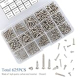 🔩【625 Pcs & 14 Types Screws】:Phillips Pan Head Wood Screws Kits includes 14 sizes,them contains M2 x 6mm/8mm/10mm;M3 x 6mm/8mm/10mm/12mm/16mm/20mm; M4 x 8mm/12mm/16mm/20mm/30mm screws, meet all your demands, a must for your home life.When screwing the screw, if you use s hand electric drill please adjust it to a low gear and the torque should be below12.excesive torque may damage the screw or the puncture the wood 🔩【Material & Workmanship】:Self Tapping Wood Screws are made from high quality Carbon steel known for its dependable and rigid strength as well as its corrosion resistant quality. The screw thread is very sharp and sturdy. 🔩【Advantage】:Pan head self-tapping screw with deep thread design and Sharp Tip is durable and sturdy,Good holding power achieve the effect of connecting and fastening.If the material of the panel is very hard, please pre-drill appropriate holes before using 🔩【Widely used】:Carbon Steel Wood Screws Assortment are used in using in electronic repairs such as wood furniture,laptops, computers, cell phones,clocks,small appliances etc. These screws commonly have a sharp point that helps penetrate the material.When you are mad for the missing screws, it is a perfect friend for you. 🔩【Storage Box & Mark Label】:Comes with a clear box for easy storage. And the label stuck to the lid will indicate the model of the screws, thus ensuring a convenient searching for different kinds of screws while repairing.