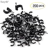 PREMIUM MATERIAL: Our nail in cable clips black cord organizer are made of premium stabilized plastic and hardened nails, making nail wall speaker wire clips very difficult to break. Coaxial wall clips for wires strong, durable; our coax cable clips for wall wire clips protect cable insulation. MULTIPLE SIZES: Our cable tacks black wire nails are 200 pcs per set, 50 pcs per size. With black wire clips of 4 mm, 6 mm, 8 mm and 10 mm, you will have the perfect size round cable clips for wall for any use. The cable wall clip super easy to install, cable holders wall multiple size means multiple uses. STURDY DESIGN: Black cable wire clips for wall cable clips with special one-piece pressing, nail cable secure clips outdoor have long enough nails to get the job done. Our nail in cable clamps are tough and slip-resistant, and will never slide out or loosen while nailing the bracket down. VARIETY OF USES: Our nail cable clips black wire clips are applicable to home use, office cable management, electrical wires, Ethernet cables, satellite dish wires, coax cables, USB cables, TV cables. Our cable tacks for wall clips for wires are applicable to computer power cords. We are very confident on our cable tacks black wire nails. IDEAL CHOICE: Any problems for circle cable nails for cords, we will provide you proper solutions. You will love nail cable clips black cable clips for wall.