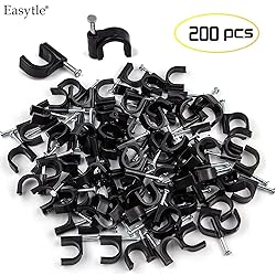 - Our cable hangers for cords wall clip come in packs of 200 pcs, and cable tacks outdoor cable clips can securely attach for the cable management cable wall mount clips of coax cables, Ethernet cables, TV cables, RG6, RG59, CAT6, RJ45, etc.Why Choose Our Cord Clips for Wall Wire Clamps? Our cable nails tacks clips are 200 pcs per set, 50 pcs per 4/6/8/10 mm size nail cable clips outdoor, you will have the perfect size cord holder wall cord clips,wire tacks black helps organize and clean up wires and cords.Coaxial cable clips are made of plastic and hardened nails,cable cord tacks for wall is slightly flexible. Baseboard wire clips are Simple construction, solidly manufactured and very difficult to break. Small wire clips durable and well made, cable staples easy to install, attached well to cable hook wall.Our coaxial wire clips for electric wires with special one-piece pressing, mini cable clips have long enough nails to get the job done and cord cable clips will never slide out or loosen.Our plastic wire clips are applicable to home and office use and nail cable holders come in a variety of sizes for flexible cable management. Not only can Cable mount clips help those cluttered cords on the floor much cleaner and safer, but also nail cable to wall also can make your house neat.Lots of great uses for these cable nail clips, but as small cable clips black nail easy to use, wire nail holder work very well, garage door wire staples to clean up single cable runs and the like. Black wire tacks helps keep cable against/attached to the wall. Our nail wire clips can be easily installed by simply positioning the cable hooks wall clamps for wires, line cable wire tacks up and using a hammer to tap nail for cable nail in clips into a surface of wood, plaster, brick, etc. Also, nail in cable holder can prevent you from tripping the loose cables, keeping you safe.