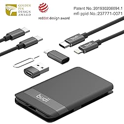 BUDI MFi Certified USB Type C Cable and 3 Types USB Adapter Combination Set USB Adapter Kit Cable Convertor Storage Box for Traveling Phone Pad Charging PC Computer Data Transfer