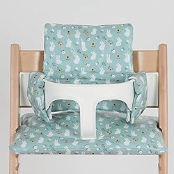 Gembebe Waterproof & Compatible Stokke Tripp Trapp Cushion Set for Newborn Baby - Easy to Clean Stokke Tripp Trapp Newborn Set - 100% Cotton Stokke High Chair Cushion Set (Mint Bunny / 49.5 Counts)