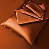Manyshofu Satin Queen Sheets Set 4 Piece - Soft Silky Satin Sheets Set, Rust Orange Bed Sheets Cooling & Luxury Bedding Sheet Set(1 Fitted Sheet, 1 Flat Sheet, 2 Pillow Cases)