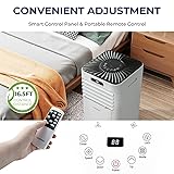 [Multi-function Air Conditioner:]This 10000BTU air conditioner features four modes----cool, dry, fan and sleep mode to meet your different needs. You can switch the wind speed to high or low for customized airflow. Meanwhile, the temperature can also be adjusted between 60.8˚F and 89.6˚F for various purposes. [Nice Cooling Solution:]Our air cooler covers a cooling area up to 350 sq.ft with 330 m³/h airflow. It can be manually adjusted by 90° vertically and 60° horizontally to ensure wide range oscillation. Sleep mode with 24H timer offers low-noise and comfortable operation during working or sleeping. [Smart Control Panel & Remote Control:]You can set the machine simply by pressing the control panel with fingertips. The remote control also allows for an easy and convenient operation by an effective distance up to 16.5ft without obstruction. Plus, you can check the working state through front LED display. [Safety Protection:]Child lock and grid design are perfect for ensuring safety of loved ones. Auto-defrost function and overload protection effectively prolong service life. It has passed ETL & DOE certification to prove quality. [Flexible Installation & Portable Design: ]Our portable AC comes with window kit, which is suitable for double/single hung window or sliding slash window no more than 47” long/wide. The drainage hole allows you to manually drain the water. With carrying handle and universal caster, you can roll this portable air conditioner around your house effortlessly.