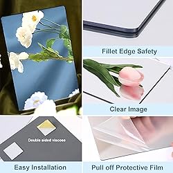 - Specifications: Size: 4 x 6 inches Thickness: 2mm Material: Acrylic Package includes: 8 x Self adhesive mirrors Note: 1.Need to peel off protective film, will display a clear mirror effect 2.Need to be stick to a smooth surface