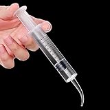 Widely used for oral or travel dental filling, glue filling, craft work, pet feeding, vehicle maintenance and other industrial uses. The plunger with this syringe is a great fit, easy to push down and pull, and won't come off Elbow: Can get into tight spaces like the mouth, making it easier to control the direction of flushing and cleaning where a toothbrush or pressure line can't reach. The dental syringe is made of polypropylene plastic, safe and harmless, with a transparent body, with a measuring scale, you can see the volume of the liquid inside, and precisely control the dose of the liquid. Package: 10 Arc Tip Syringes (12ml/cc)