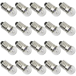 - Specification: Lighting type: Flood light. DC. Lightbulb: Button is '+' next to '-' . Base Type: E10 Nominal voltage: 1.5V Rated current: 0.3A Thread diameter: 9mm/0.35Inch Overall Length: 24mm/0.94Inch Packing: 20PCS E10 screw lamp beads