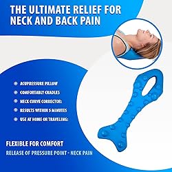 ACUPRESSURE PILLOW: The Acupillow Pro neck and Upper Back relaxer targets even more pressure points along the neck with extended range. The device remains firm, but not too stiff with the new shape specially designed with more pressure points that extend throughout the neck, upper shoulders and back to relieve tension. COMFORTABLY CRADLES: Simpler than other neck pain relief devices, such as pro cervical neck traction collars, which are cumbersome or uncomfortable. Acupillow Pro is still a neck relaxer in every sense – it’s a sore neck pillow that lets you relax with real ease. NECK CURVE CORRECTOR: Cervical pain and muscle stiffness can be caused by a number of conditions, from a pinched nerve, incorrect neck alignment, arthritis, even TMJ. Acupillow is designed to be a cranial cradle that restores the natural curve of the cervical spine. RESULTS WITHIN 5 MINUTES: Acupillow Pro neck stretcher can feel like the savior of pain relief after just the first use. With continued daily use, neck alignment is slowly restored for long-term freedom from neck pain. USE AT HOME OR TRAVELING: Pick up your chiropractic neck pillow and go! Acupillow Pro is made to be used on any firm surface, from your kitchen floor to a hotel room when you’re on the go. Neck tension relief is ready for you whenever you need it. Note: This is not designed to be used as a sleeping pillow.