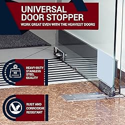THE BEST FLOOR-MOUNT DOOR STOPPER TO KEEP YOUR WALLS PROTECTED: Safeguard your walls from scratches, dents and damages that your doors can potentially cause with the most effective hemisphere door bumper that will keep both your door and wall intact for years to come. With a durable silicone coating, this wall protector stopper completely prevents wear and tear as well as loud slamming noises. QUALITY FOR UNMATCHED DURABILITY: Made of the highest quality 316 stainless steel Black Finish , the NYCO metal door stoppers work great even with the heaviest doors. Strong, sturdy and super durable, they make a great choice for any door around your house. Plus, stainless steel is rust and corrosion resistant to remain spotless for a lifetime. MODERN, DISCREET DESIGN TO MATCH THE DÉCOR OF ANY ROOM: Unlike bulky or cheaply looking wall door stoppers, this sleek and modern looking stainless steel door bottom stopper blends seamlessly with the décor of any room to get the job done in the most discreet way possible. [Dimensions: 1.77” x 1.33” inches] UNIVERSAL DOOR STOPPER – GREAT FOR HOMES, OFFICES & BEYOND: Thanks to its heavy-duty construction, our bottom hemisphere doorstoppers can securely hold any metal, steel, wood or glass door in place. A foolproof option for your entryway door, kitchen door, bedroom doors, bathroom doors, offices, stores and any other home or professional setting PROFESSIONAL-GRADE QUALITY FOR CONTRACTORS OR ANY HOMEOWNER: Easy to install on any type of floor with just one screw [all necessary hardware included], the NYCO metal/silicone door slam stopper will meet the needs of professional contractors, carpenters, handymen, people into DIY home improvement projects or any home owner just like you.