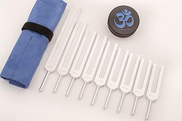 USES: Our Solfeggio Tuning Forks for Healing Set is designed for emotional/spiritual awareness and clearing by Reiki masters, massage therapists and energy practitioners. Clear energy centers for reducing stress and anxiety and promote good health and wellbeing QUALITY: Our tuning fork set is made in the USA using high grade impact resistant aluminum alloy, machined not molded, Our solfeggio frequencies are set to the Reynolds Aluminum Engineering Study standards. Made specifically for sound therapy for healing, medical and science professionals INCLUDED: Our tuning fork set includes the nine Solfeggio frequency tuning forks, a tuning fork activator and a cloth bag: 174 hz, 285 hz, 396 hz, 417 hz, 528 hz tuning fork, 639 hz, 741 hz, 852 hz, 963 hz PERFORMANCE: Our tuning forks are designed for sustainable use as sound healing instruments by producing long lasting pure tone designed for consistent accuracy, and sustained harmonics. Our tunings have tested accurate after 30 years of use ACCURACY: Our tuning forks are professionally machined and tuned to within .5% of the indicated frequency at 20 degrees Celsius, 68 degrees Fahrenheit. This level of quality and precision is necessary when using tuning forks as sound therapy instruments
