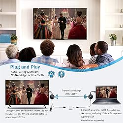 【Screen Mirroring Video/Audio to Big Screen】 Our Wireless HDMI Transmitter and Receiver are designed to auto pair for wirelessly streaming 4K HDR video and audio up to 100FT/30M transmission range from laptop/PC/sky box to HDTV, projector, monitor. You can enjoy watching movies, TV shows, playing gaming, doing presentation, live streaming, and more 【Plug and Play】The Wireless HDMI transmitter and receiver is auto paired before factory, which is truly plug-and-play, no apps, Bluetooth or other setting required. Mirror and Extended Mode to meet your different usage needs. The boot interface provides 5 language selection functions to suit the needs of different languages 【Note: External antenna cable for RX】 【4K@30Hz Home Theater Experience】This wireless HDMI transmitter and receiver kit have a resolution of 720p, 1080p, and 4K. You can enjoy the most realistic and immersive watching movie, live sports and gaming experience on a 4K compatible big screen. Add a new feature to the old TV, you could casting all apps you know, Neflix, Prime Video, Sky Go, BT Sport, DIRECTV, HULU, Comcast TV, XFINITY, Vudu, Movistar, HBO and more 【165FT/50M Wireless Transmission】With the external antenna of the HDMI extender, HDMI audio / video signals can be transmitted from an HDMI source up to 165FT in an open environment. Allow you to watch online video on bedroom’s TV, but receiving the signal from the other room’s set-up box, also good for other long-distance operations, like Surveillance, live streaming 【2.4GHz / 5Ghz Ultra High Speed】Equipped with the latest version 5Ghz wireless transmission standard technology, the transmission signal can stream against walls and has less interference from home appliances. You could watch online video with 0.1 latency. 【1 RX to 8 TXs for Meeting Room】