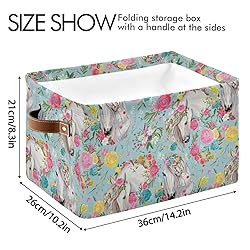 Bolaz Large Storage Basket Horse and Flower Foldable Storage Box Organizer Bins with Handles for Bedroom Home Office