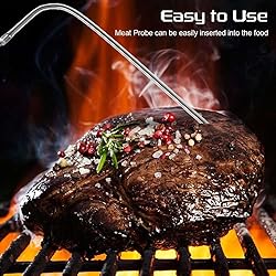 【Replacement for Pit Boss Meat Probe】This meat probe fits for Pit Boss Pellet Grills and Smokers with digital control meat probe capability. Compatible with Pit Boss Models: Austin XL Pellet Grill, 3 Series Vertical Smoker, 1000 Nascar, 1000 Traditions, 1000 Traditions 2, 1000SC, Classic, KC Combo, Lexington, 5 Series Vertical Smoker, Pro Series 820, Pro Series 1100, Pro Series 1100 Combo, Ranch Hand, Rancher XL, Tailgater, Whiskey Still, 7 Series Vertical Smoker, 440 Nascar, and 700 Nascar. 【High Quality】The meat probe for Pit Boss is made of food grade stainless steel. The probe can withstand temperatures up to 1000°F (500°C), and the stainless steel cable can withstand temperatures up to 718°F (380°C). Comes with two meat temperature probe clip, help keep the temperature probe in place. Two numbered tags is used for easy distinction 【Accutare Temperature】Monitor meat temperature. The meat probe provides the accurate temperature for the Pit Boss Grills, allowing you to enjoy a delicious barbecue. 【Easy To Clean】Easy to attach to the smoker and easy clean up. The thermometer probe for Pit Boss can be rinsed with water or cleaned with a damp rag. Tips: The plug is not waterproof. In order to prolong the service life, please avoid repeatedly kinking or twisting the probe cable. Easy to Use】Insert the Pit Boss meat probe replacement into the grill directly . Great replacement probe, suitable for all kinds of meat. Included 2 pit boss temperature meat probes(Dimension: 6.7 inches stainless steel probe, 4.9 inches braided stainless wire. 3.5mm plug), 2 stainless steel probe clips and 2 numbered tag.