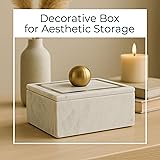 Keepsake Box with Lid – Marble Stone with Gold Accents, Elegant Storage for Jewelry, Accessories or Tabletop Styling – Modern Home Decor Accent Box for Living Room or Bedroom – 7", White