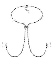 D.Bella Fake Piercing with Chain Fake Rings for Women - Non Piercing Ring with Butterfly Necklaces