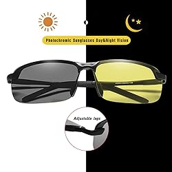 - Why choose us?See the world clearly when you need it with our practical polarized photochromic sunglasses. Photochromic aviator sunglasses also filter out most nighttime glare, reducing eye strain. Day and Night Driving Glasses give you a clearer vision when driving at night or on cloudy and rainy days, making your journey safer. Rectangle sunglasses for men, perfect for beach, driving, golf, fishing, travel and other outdoor activities.❤Features:Lighter ☛ Aluminum magnesium metal alloy frame is more lightweight and durable, you can hardly feel them on your face! photochromic sunglasses are comfortable to wear, these retro aviator sunglasses for men and women will make a statement no matter where you wear them!More HD ☛ HD polarized lenses: The photochromic of UV400 polarized protective lenses is automatically reversible, which can absorb 85% of the visible light intensity to a certain extent, reducing eye fatigue and keeping the eyes in the most comfortable state.MORE FEATURES ☛ Photochromic Lenses: Men's Sunglasses Polarized Sport Glasseslenses darken when exposed to strong UV rays in sunlight, but not artificial light, so lenses darken in bright sunlight and darken in low The dimming in ambient light conditions is clear!❤Package Contents:✔1 X Polarized photochromic sunglasses✔1 X Glasses case✔1 X Soft Glasses Cloth✔1 X Polarization Test Card⚠Tips:►Please do not use sports sunglasses for men polarized in high temperature for a long time, it is not good for your health and glasses.►Polarized sports sunglasses should be handled with care when driving to avoid damage and cleaned regularly.► Clean the lenses with soapy water or mild detergent and dry gently with the soft lens cloth provided.► When you don't need to use glasses and accessories, put them back in the glasses case.