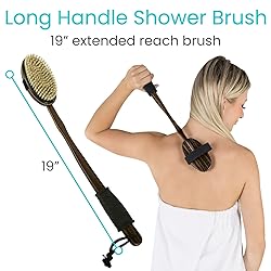 REVITALIZE YOUR SKIN WITH VIVE DRY BRUSH SET: Achieve smoother skin and stimulate lymphatic drainage with our 3-piece dry skin brush set. Gently exfoliate, release toxins, and target cellulite for healthier skin. 3 BRUSH SET: Made with 100% natural boar hair bristles, this set includes a coarse bristle brush, a soft bristle brush and a facial brush. Use the coarse and soft bristle brushes with the integrated hand straps or attach them to the extended reach handle for easily exfoliating hard to reach areas. The small facial brush is extra soft and safe for use on the sensitive skin of the face and neck for a smoother, softer appearance. LONG EXTENDED REACH HANDLE: Constructed with lotus wood, the wooden handle is 14” long. The extended handle allows you to easily brush hard to reach areas such as the back and the feet. Large enough to slide on your wrist to prevent dropping the brush, a cord loop is also attached to the dual brush handle for convenient hanging storage. DURABLE HANDLE: Built to last with high-quality materials, this body brush features a handle coated in waterproof lacquer. Includes an adhesive hook for convenient storage in your bathroom or shower. VIVE GUARANTEE: 60 day guarantee so you can purchase now with confidence.