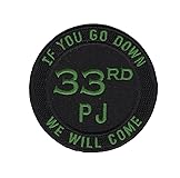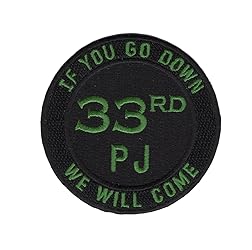 - 33rd RQS PJ Patch Insignia Rescue Squadron "If You Go Down We Will Come" War Room * Height: 3.00 inches, Width: 3.00 inches * Shape: Round * Edging: Flat Edge * Sew On