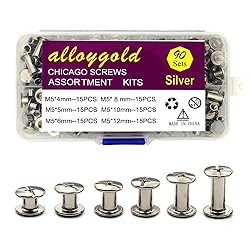 - With this 90 Sets Silver Chicago Screws Leather Assorted Kit, you'll have everything you need to add strength, durability, and professional-looking finishes to any of your leather crafts. Each kit includes six different sizes of Chicago screws for leather (M5 X 4, 5, 6, 8, 10, and 12) with 15 sets of each size. Additionally, the kit includes three different lengths of screw (M4 X 3, 4, and 5), which you can use to combine the screws freely.These leather rivets are strong and durable, making them easy to bind and disassemble. They feature an excellent finish, professional appearance, good screw head chamfering, and a low profile slot, making them the perfect choice for anyone looking to create high-quality leather crafts. Their advanced nickel plating and their stable oxide film on the surface will keep them durable and anti-rust.These screw rivets are incredibly versatile and are especially suitable for all kinds of leather crafts, such as belts, handbags, leather shoes, binding documents, books, photo albums, and DIY crafts. When you add them to your projects, you'll be able to mix and match to create any number of designs and styles.All of the leather screw rivets are packed in a delicate and transparent box, with the book screws arranged according to size. This makes it easy for you to store and find the size you need. Don't settle for second-rate leather screws when you can have the best with this 90 Sets Silver Chicago Screws Leather Assorted Kit. Try them out now and experience the difference for yourself!