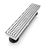 - WEBANG 12 Inch Linear Shower Drain Rectangular Floor Drain with Accessories Square Hole Pattern Cover Grate Removable SUS304 Stainless Steel CUPC Certified Brushed