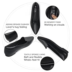 MUSSHOE Black Flats for Women Pointed Toe-Comfortable Business Casual Work Shoes, Dressy Suede Slip On with Memory Foam for Office, Teacher & Standing All Day