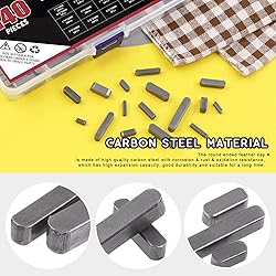 - 👑 Hilitchi 144pcs 16 Sizes Carbon Steel Round Ended Feather Key Set, 3mm 4mm 5mm 6mm Key Stock Keystock Key Parallel Drive Shaft Keys Set for Fasteners Mechanical Industry 👑 Why Choose Us? 🔔 1.Great Workmanship 💡This set of round ended feather keys have accurate process, smooth surface, without blur and high expanding ability. Also, they are rust-proof, wear-resistant and have high expanding ability. 🔔 2.Valuble Practical Set 💡The round ended feather key set are made of high quality carbon steel, rust-proof and wear-resistant. mainly used to fasten the equipments disassembled frequently. 🔔 3.Multiple Choices 💡Here we provide 16 kinds of different sizes for you to choose from, you can find the suitable one accdoring to your real need. Each size has sufficient quantities, which can meet the maximum of requirement for you. 👑 Specifications: 💡Material: Stainless Steel 💡Sizes: As Shown in The Picture 💡Quantity: 144Pieces in total 👑 Package Included: 💡10Pcs -------- 3x3x8mm 💡10Pcs -------- 3x3x10mm 💡10Pcs -------- 3x3x12mm 💡10Pcs -------- 3x3x16mm 💡10Pcs -------- 4x4x10mm 💡10Pcs -------- 4x4x12mm 💡10Pcs -------- 4x4x16mm 💡10Pcs -------- 4x4x20mm 💡10Pcs -------- 5x5x12mm 💡10Pcs -------- 5x5x16mm 💡10Pcs -------- 5x5x20mm 💡10Pcs -------- 5x5x25mm 💡5Pcs -------- 6x6x16mm 💡5Pcs -------- 6x6x20mm 💡5Pcs -------- 6x6x25mm 💡5Pcs -------- 6x6x30mm 💡1Pcs -------- Storage Box 💡Intotal 145Pcs