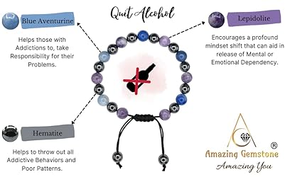 Bracelet for Quit Alcohol contains real crystal beads Lepidolite, Blue Aventurine and Hematite. Lepidolite helps in release bad habits, Blue Aventurine for eases pain & Hematite throws out all Addictive Stocking Stuffers. SIZE : This is an adjustable bracelet suitable for all Men Women Kids with wrist size of 7 to 10 inches. DETAILED : You'll get a detailed information card describing the benefits of each stones and their meaning along with your each ordered set to help you get started. GIFT : This lovely healing crystal bracelet could be a great gift aspect for any occasions like Fathers Day, Mothers Day, Wedding, Anniversary, Christmas, Friends, Valentine, Birthday etc. or for one to improve the cause naturally. GUARANTEE : All these beautiful bracelet comes with company's COA - certificate of authenticity. Ideal gift for step mom mothers day gifts stepmom mom gifts from daughter step mom necklace stepmother gifts on mothers day Stepmom Mothers Day Gifts Step Mom Gifts from Daughter Son mothers day necklace mother in law gifts from daughter in law mothers day gifts from daughter in law
