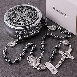 - HanlinCC 6mm Hematite Stone Black Beads Catholic Saint Benedict Rosary Necklace for Men with St.Benedict Center Piece and Crucifix with Metal Gift Box; HanlinCC specialized in manufacture Catholic products since 2009, include Rosary, Decade, Bracelet, Car rosary, Keychain, Medal,Scapular... We had supplied our rosary to many Churches in Italy, France, Spain, USA, Brazil and so on, so we are very strict to inspection each step from choose materials, assembling rosary, package and shipment. Welcome choose HanlinCC, give a meaningful gift to own self or a special one in your life, at the first communion, confirmation, and other important moments, bring them more closer the God and a happy life.