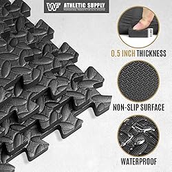 - WF Athletic Supply Puzzle Exercise Mat, EVA Foam Interlocking Tiles with Border, 1/2" Thickness Interlocking Soft Foam Puzzle Play Mats for Home Gym, Garage & Kids’ Playroom