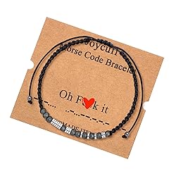 🎁 SECRET MESSAGE READ: Oh F**k it 🎁 UNIQUE GIFTS: Come with a card corresponding to the morse code and messages, secret messages only you two know, the unique words you want to tell he. Using international morse code, the obsidian beads represent ▬, the stainless steel beads represent ● 🎁 EXCELLENT BRACELETS: Made of waxed nylon cord with Obsidian beads and Hematite beads.Hypoallergenic, never turn your wrists green, perfect for sensitive skin. Classy look, substantial but light weight comfortably for daily wear.It's a great gift for you to express your love for your husband in Birthday, Christmas and every big day! 🎁 PERFECT SIZE: Expandable bracelets sizes can be adjusted 6''-12 '' to fit for most of women and men wrists easily 🎁 AFTER SALES SERVICE: Joycuff will provide each customer with the highest standard of customer service and perfect satisfied shopping experience. If you are not completely satisfied with your bracelets, Just contact us, We will save your problem within 24 hours