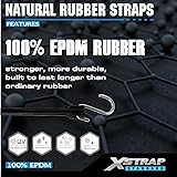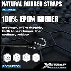 LONG-LASTING & HEAVY DUTY: Commonly used for Motorcycle tie downs, Flatbed canvas tarps for your pickup truck or just to keep your loads in place WORKS FOR ALL WEATHER CONDITIONS: XSTRAP 100% EPDM Rubber Cargo Straps are designed to withstand Rain, sleet, hail, or snow, even the harshest outdoor elements. These Bungie tow straps are waterproof, weather-resistant, and can be used outdoor or indoors FLEXIBLE: Multiple Size: (6) 15", (10) 21", and (4) 31" lengths - over 50% of its original length! Bounce back to secure your merchandise in an unassuming hold RUST-RESISTANT S-HOOKS: The zinc-plated metal S-hooks on both ends won't slip or loose, making for easy fastening We encourage you to contact us for any problem. We are committed to providing each customer with the highest standard of service