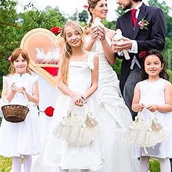 - Features 1. Material: Lace flowers, Ivory satin and artificial pearl. This wedding basket is unparalleled and all the details are manually completed by handcraft. 2. Occasions: It is great for wedding party, this flower girl basket is suitable for holding flowers or rose petals, it can also be hold candy as a decoration placed on the table. 3. Perfect for Your Wedding: Wedding flower basket for little flower girl to scatter the flower petals down the aisle in wedding days. Helping prepare a royal walkway for your wedding party. 4. Handheld Size: The tiny basket with handle measures 20 x 18 x 9 cm, the right size makes it a nice accent, not too big or too small, looks delicate and compact, bringing more charms to your appearances. 5. Elegant Design: These wedding flower girl baskets are designed with many fake pearls, so that bring more flavor to your party, leaving an unforgettable event for your guests and you. Specification Material: Cloth, Lace Color: White Size: 20 x 18 x 9 cm/7.9 x 7 x 3.54 inch Package Include: 2x Flower Girl Basket Notes: 1. Manual measuring, please allow 1 ~ 3 mm error, thank you. 2. Due to the difference between different monitors, the picture may not reflect the actual color of the item. We guarantee the style is the same as shown in the picture.