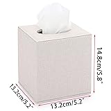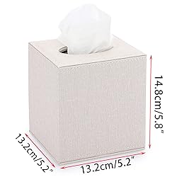 High Quality - The attractive tissue box cover is made of high quality MDF(inside) + Linen (outside) materials; It's sturdy to keep the tissue box from being crushed; The stitching is not only even and neat, but also contrasts nicely with the beige linen material. Functional - The stylish and practical cube tissue box can not only be used everywhere in your home, such as: living room, bathroom, vanity, dresser, night stand, table, countertop; But also suitable for office, car, restaurant, bar, hotel or other places. Stylish Decoration - The simple & classy style square tissue holer is perfect for most home decor, not only match well with your various furniture, but also add more modern touch to your home. Magnetic Bottom - The bottom plate of the tissue box holder is securely closed by a magnetic closure, so you can easily put tissues or tissue box in, and without worrying about the tissues or tissue box will fall through when you pick it up. Suitable Size - Product External Size: 5.2" L X 5.2"W X 5.8"H; It's suitable for a regular or standard cube of Kleexxx brand tissue box, so you don't need to remove the tissues from the original box.