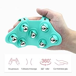 - Our roller ball is designed to relieve and reduce sore.This self massager will release you from muscle pain and mental pressure after a long time’s work or study, speed up recovery of aching muscles in deep sleep,too. This massage gloves has a mini size lightweight and small,that can be easily put into bags.You can bring it to home, office and anywhere you want. The palm shaped massage roller is suitable for any point of your body, it can work well as a massager for neck, back, foot,legs,muscle, arms,hands and so on. It’s Best for full body care and blood circulation,greatly benefits your health. The back of this handheld massager is made of durable soft pvc brushes,which could also massage your palm while massaging. 7 steel rolling balls can be flexibly rotated in 360 degrees that can massage every corner of your body. Specification: - Material: Plastic - Size:6.29x3.93x1.18 inch Package Includes: 1 x Massager