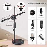 Microphone Stand Desk Adjustable Desktop Microphone Stand with Boom Arm Upgraded 3 in 1 Table Phone/Mic Stand with Microphone Clip,Cell Phone Clip,3/8" to 5/8" Adapter for Universail Mic