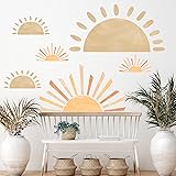 Half Sun Wall Decals Large Boho Wall Decals Modern Walls Decal Vinyl Sticker Removable Peel and Stick Sunshine Walls Stickers for Living Room Bedroom Playroom Decor