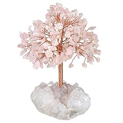 mookaitedecor Natural Rose Quartz Crystal Money Tree with Rock Quartz Cluster Base, Healing Crystal Feng Shui Tree for Table Display Home Decoration