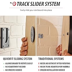 TRACK SLIDER SYSTEM - The large slider system allows you to easily slide your dartboard into place; no more trial and error when mounting your dartboard STURDY SUPPORT - The Viper QuickFit provides a secure and balanced hold on walls, cabinets, and backboards, eliminating wobble for a better darting experience UNIVERSAL COMPATIBILITY - The Viper QuickFit works with any steel tip, sisal, or “bristle” dartboard and can be mounted to any flat surface EASY SETUP & REUSABLE - Simply attach the track to your wall, and the slider to your dartboard for a perfect mount in minutes PACKAGE INCLUDES - one QuickFit dartboard mounting bracket, Pro Line oche measuring tape, screws needed for proper installation, and mounting instructions