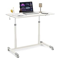 - COSTWAY Mobile Height Adjustable Standing Desk, Compact Pneumatic Sit to Stand Computer Desk w/Lockable Casters, Ergonomic Rolling Laptop Table w/Steel Frame for Home Office (White)
