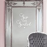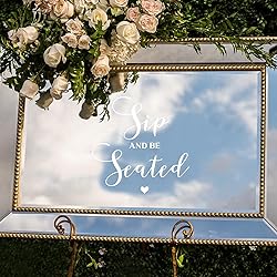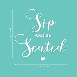 Vinyl Wall Art Decal - Sip and Be Seated - 14" x 14" - Married Couple Quote Sticker for Wedding Reception Sign Entryway Wine Glass Champagne Station Party Entryway Decor (White)