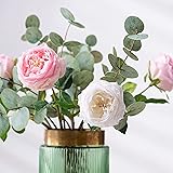 UKELER Pink Austin Roses Wedding Bouquet 4 Pcs Real Touch Latex Artificial Flowers for Home Decor Flower Arrangement Wedding Centerpieces