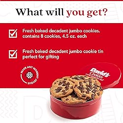 Gift pack contains: David’s cookies triple chocolate chunk cookie gift tin contains 8 – 4.5 oz. Freshly soft-baked cookies. Perfect gift for holidays & special occasions: Our fresh homemade cookies are a perfect gift for friends and family members on birthdays, holidays, or any special occasions. Jumbo Size: Each cookie is jumbo-sized, making it substantially satisfying as a single serving. The larger size enhances the indulgent experience, perfect for those moments when a small treat just won't do. Gourmet Flavor Profile: The Triple Chocolate Chunk flavor includes a rich blend of dark, milk, and white chocolate chunks, making it a luxurious treat for chocolate lovers. Highest quality Fresh ingredients: Our cookies are all-natural and contain no added preservatives — just like the homemade cookies you know and love.